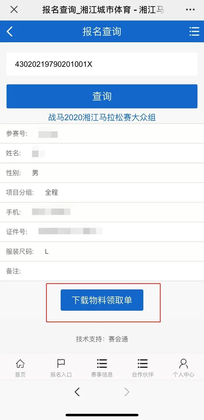 登錄賽事官方網(wǎng)站點擊“報名查詢&報名確認函下載”