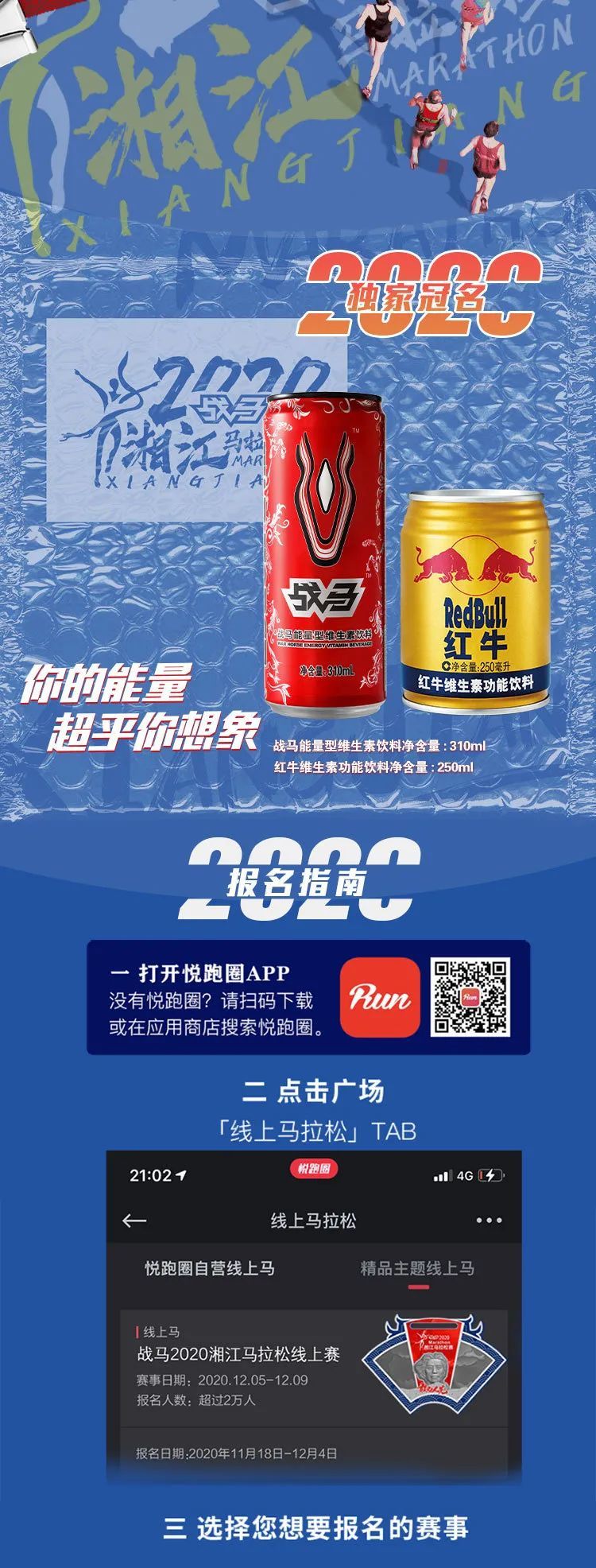 ? 報名須知:報名時需選定報名項目,并仔細閱讀《戰(zhàn)馬2020湘江馬拉松線上賽常見問題》和《免責(zé)聲明》