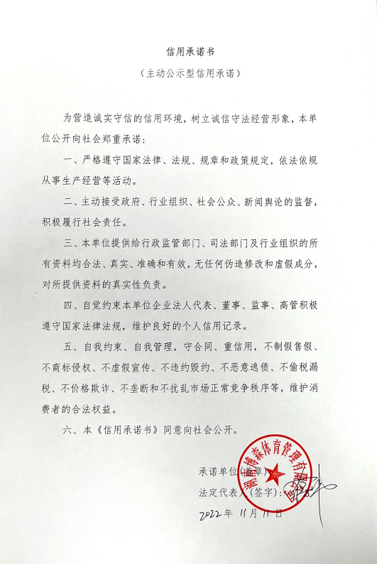 公司總經(jīng)理蔣偉簽署信用承諾書